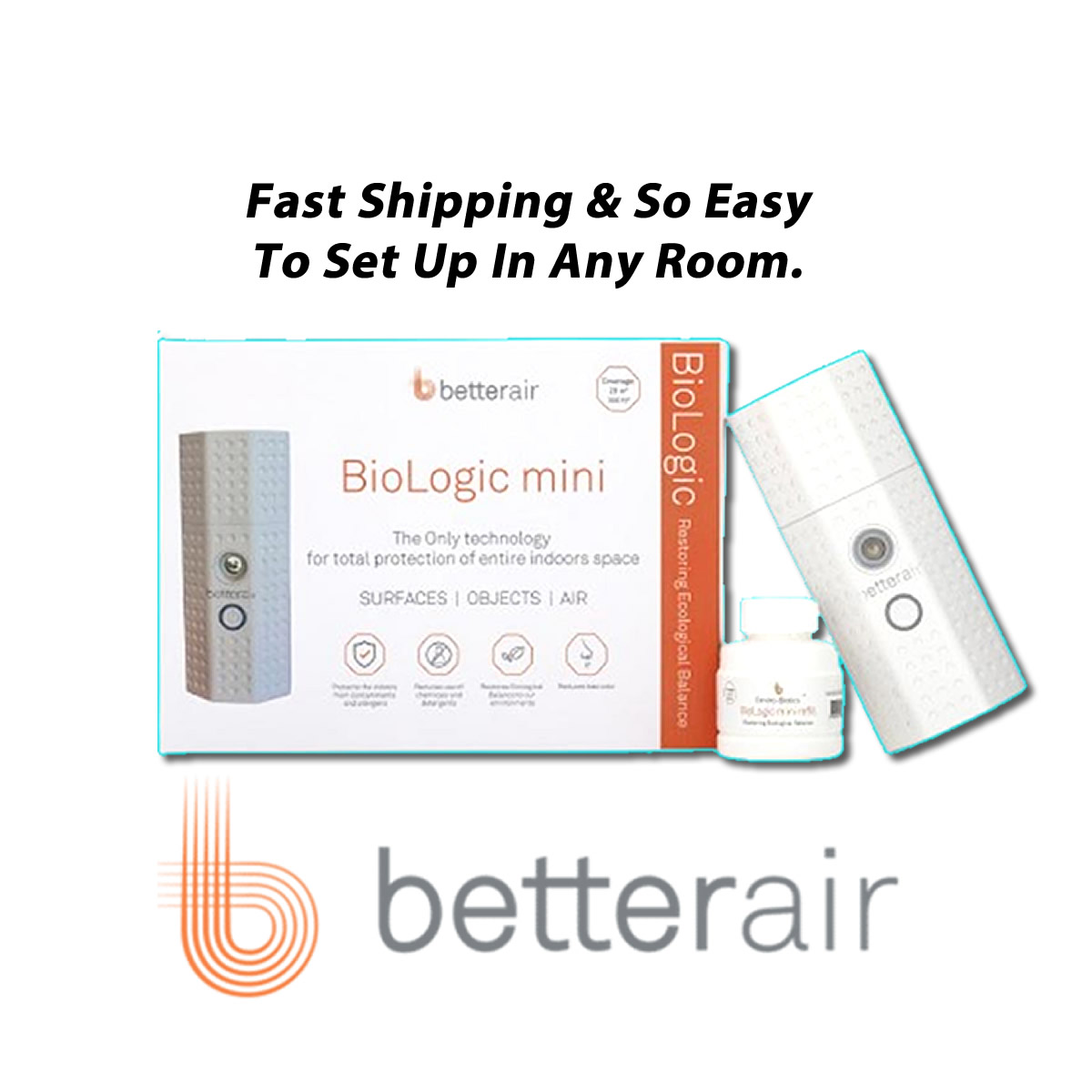 - Global Recognition: Betterair’s Environmental Probiotics, integral to the BioLogic Mini™, has been endorsed and approved by leading institutions such as the EPA, ECOCERT, ALLERGYUK, PTPA, MADE SAFE, ISO 9001, and Sima-Italy.